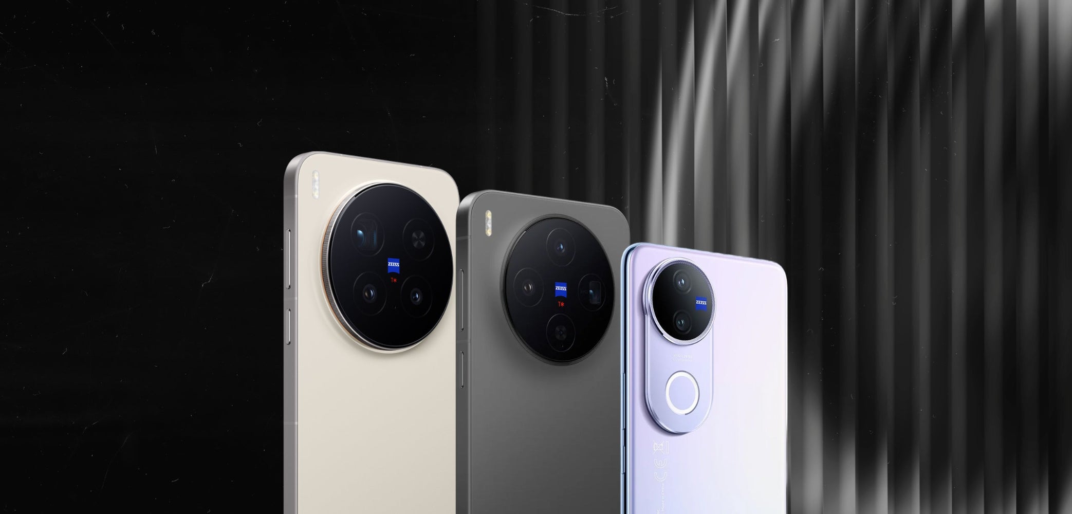 Vivo X200 FE smartphone showing front and back on a white backgroundVIVO X200 FE camera details on a light blue background, featuring ZEISS branding.